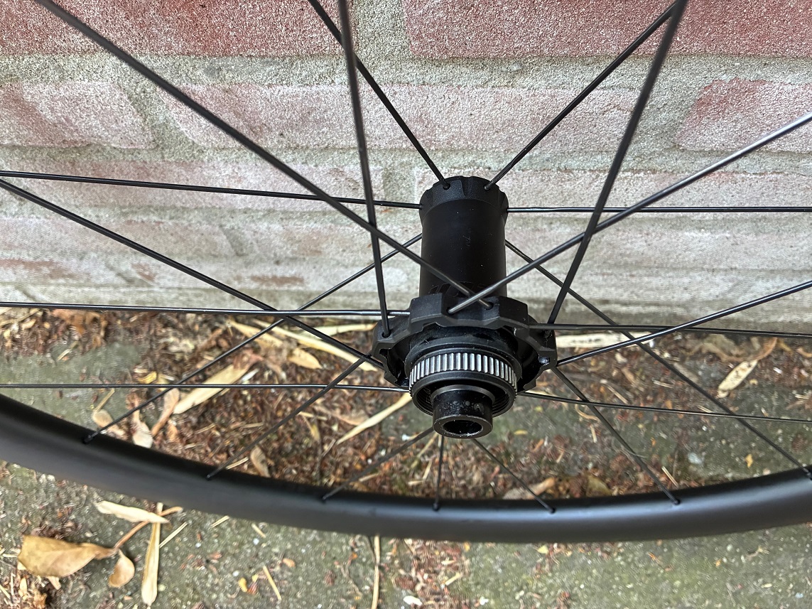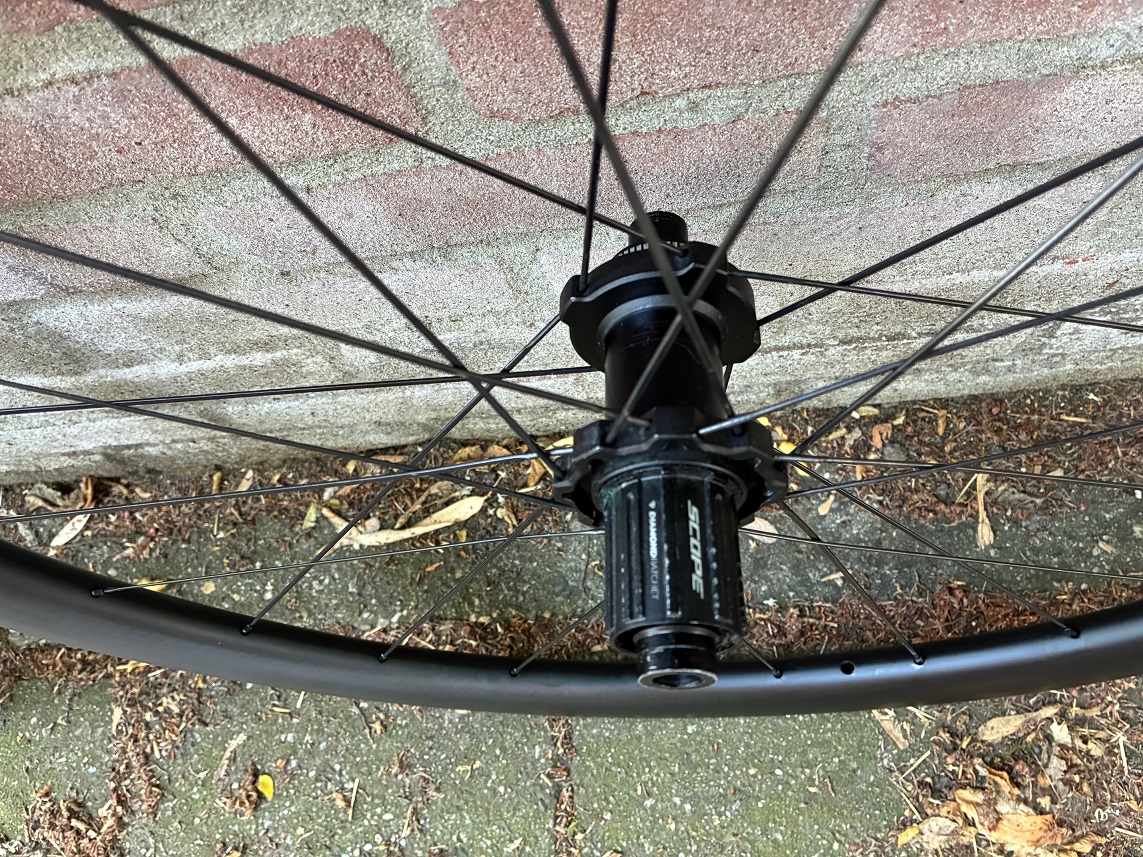 → Gebruikte Scope R4 disc naven (asymmetrisch -> voornaaf 14 spaken links (remkant), 7 rechts; achternaaf 16 spaken rechts (body), 8 spaken links