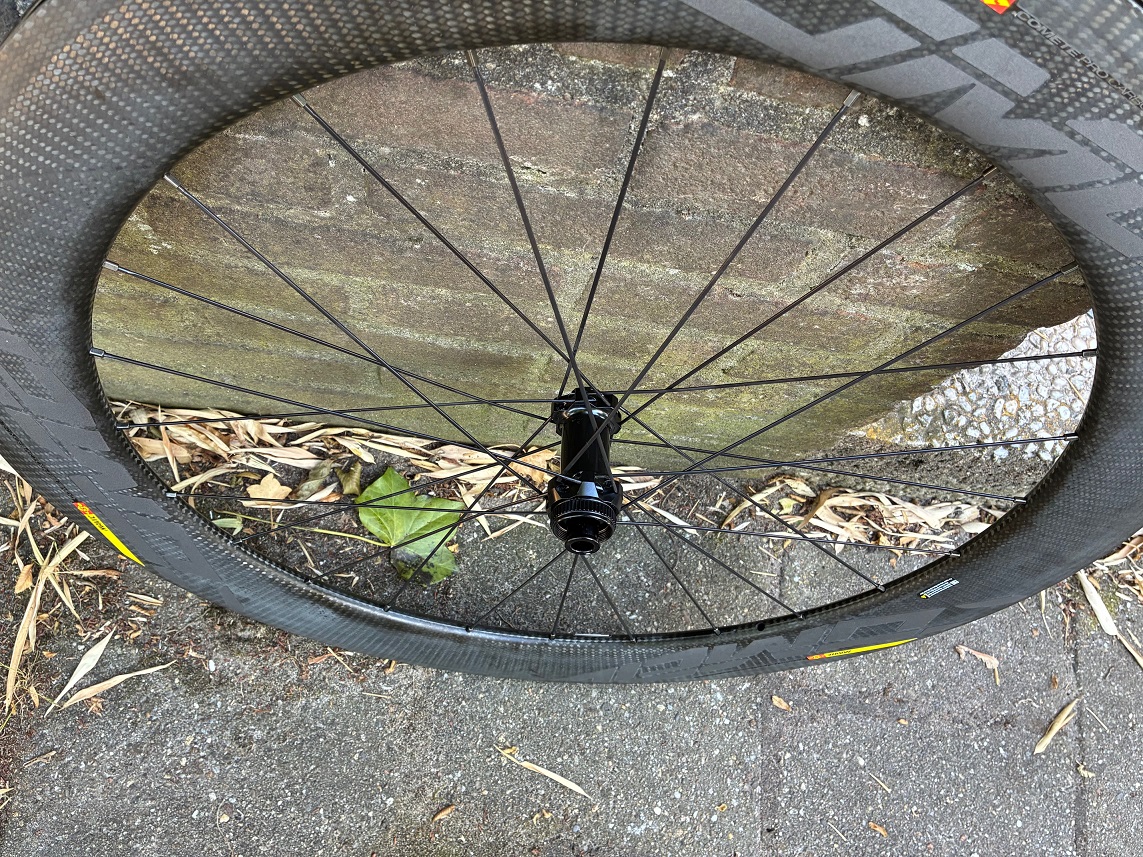 → Nieuwe naaf (DT Swiss 350 SP voornaaf disc) inbouwen in Mavic comete pro carbon wiel wegens defecte originele naaf